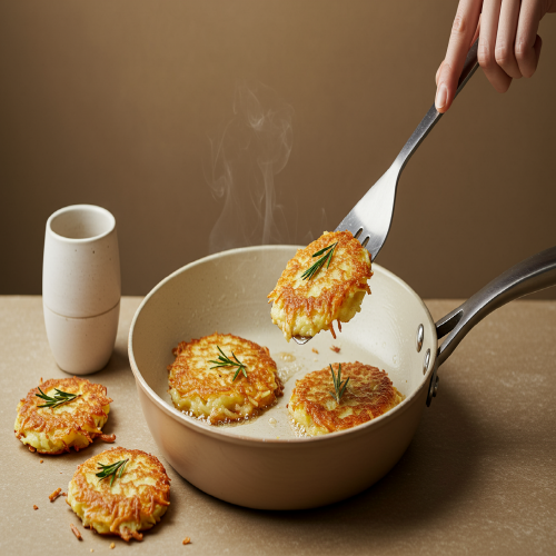 - 충분한 기름: 팬에 기름을 아끼지 마세요. 감자채전은 기름이 충분해야 바삭하게 익습니다.