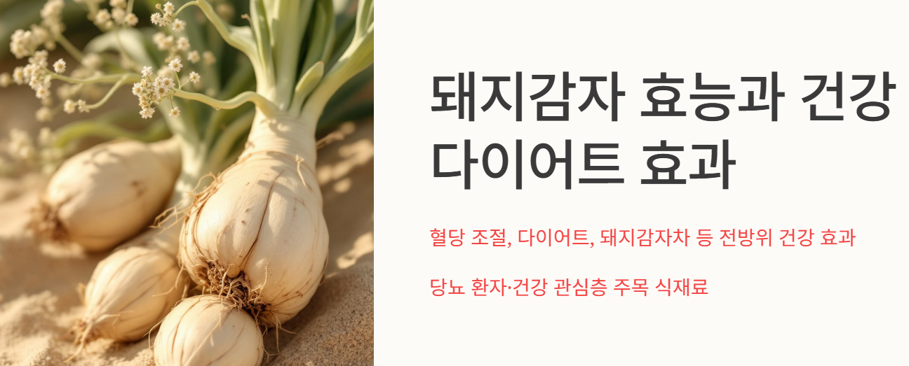 돼지감자, 들어보셨나요? 이름은 '감자'이지만 사실 해바라기과에 속하는 식물로, 이눌린이라는 특별한 성분을 다량 함유해 당뇨 환자와 다이어트에 효과적인 건강 식재료로 주목받고 있습니다. 특히 최근에는 돼지감자차, 환, 분말 등의 형태로도 많이 소비되고 있어 건강식품으로 관심이 높아지고 있죠. 이 글에서는 돼지감자의 효능부터 섭취 방법, 주의사항까지 알기 쉽게 정리해드릴게요.