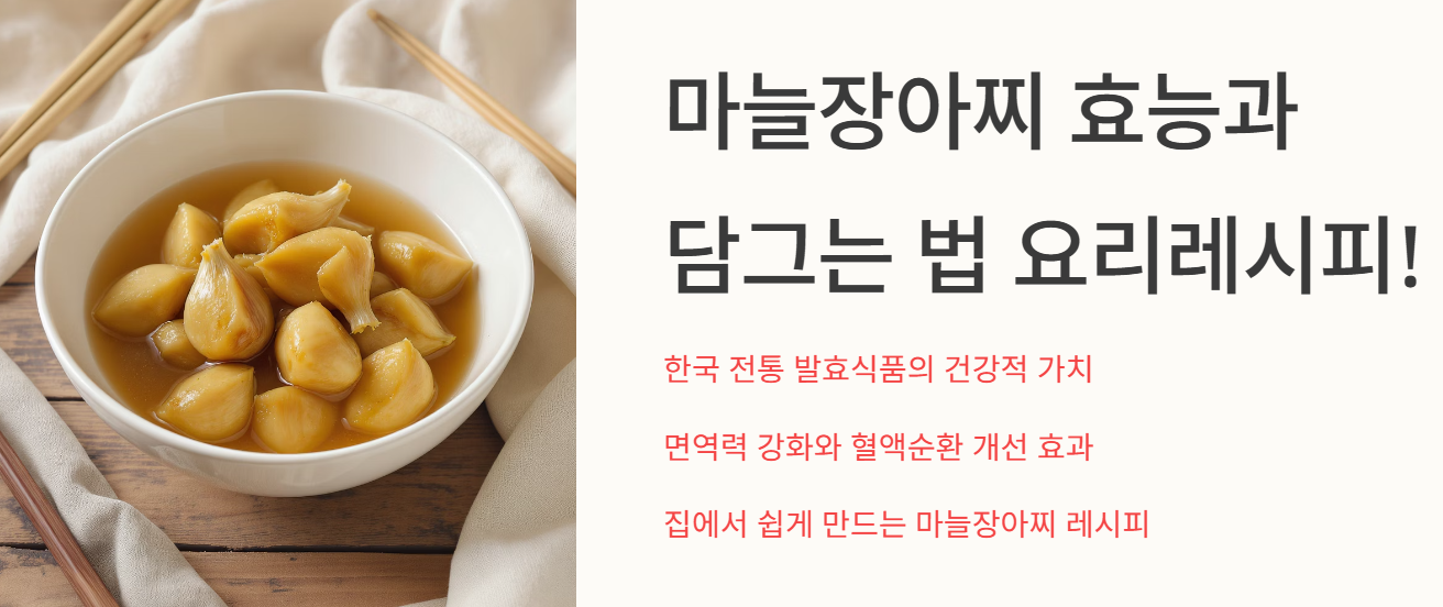 마늘장아찌는 한국의 전통 발효음식 중 하나로, 알싸한 마늘의 매운맛과 짭조름한 간장 양념이 어우러져 깊은 풍미를 자랑합니다. 특히 마늘장아찌 효능은 건강에 매우 이롭기로 유명하여 면역력 강화, 혈액순환 개선 등 다양한 효과를 기대할 수 있어요. 이번 글에서는 마늘장아찌의 주요 효능과 함께, 집에서 누구나 쉽게 따라 할 수 있는 마늘장아찌 담그는법과 요리 레시피를 소개합니다.