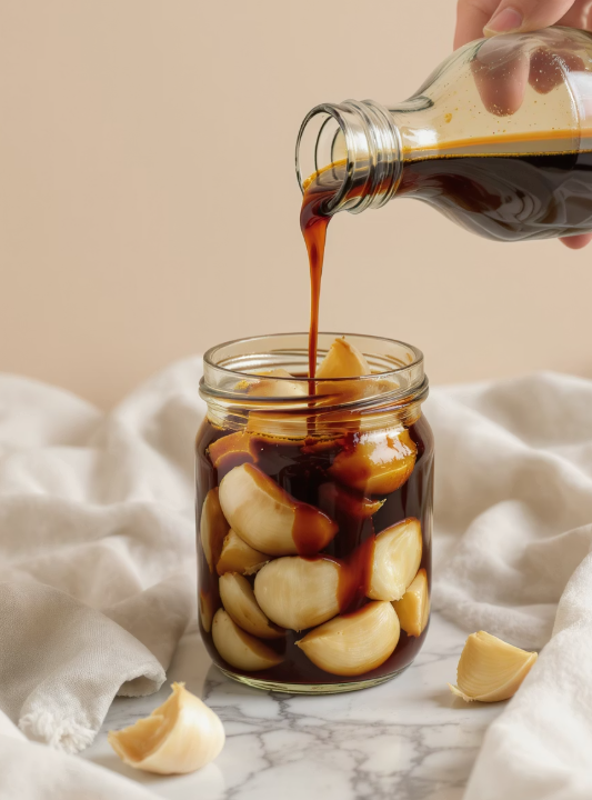 - 3단계. 마늘 담기: 유리병에 마늘을 넣고 양념장을 부어 소금 약간을 첨가합니다.