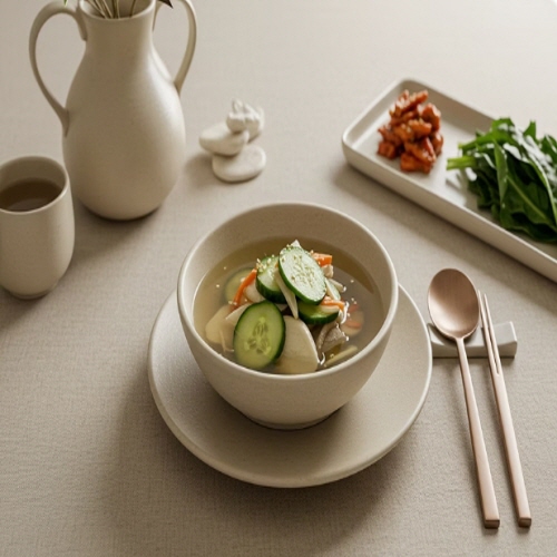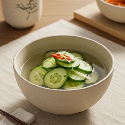 시원한 국물과 오이의 성질이 더해져 체온을 낮춰주는 효과가 있습니다. 열이 많고 땀이 많은 분에게 특히 추천!