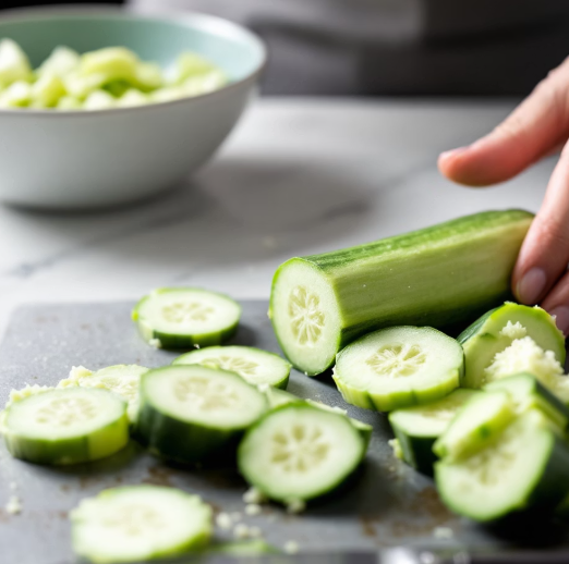 - 신선한 오이 선택: 씨가 적고 단단한 오이를 고릅니다. 껍질을 굵은 소금으로 문질러 씻은 후 물에 헹궈 준비하세요.