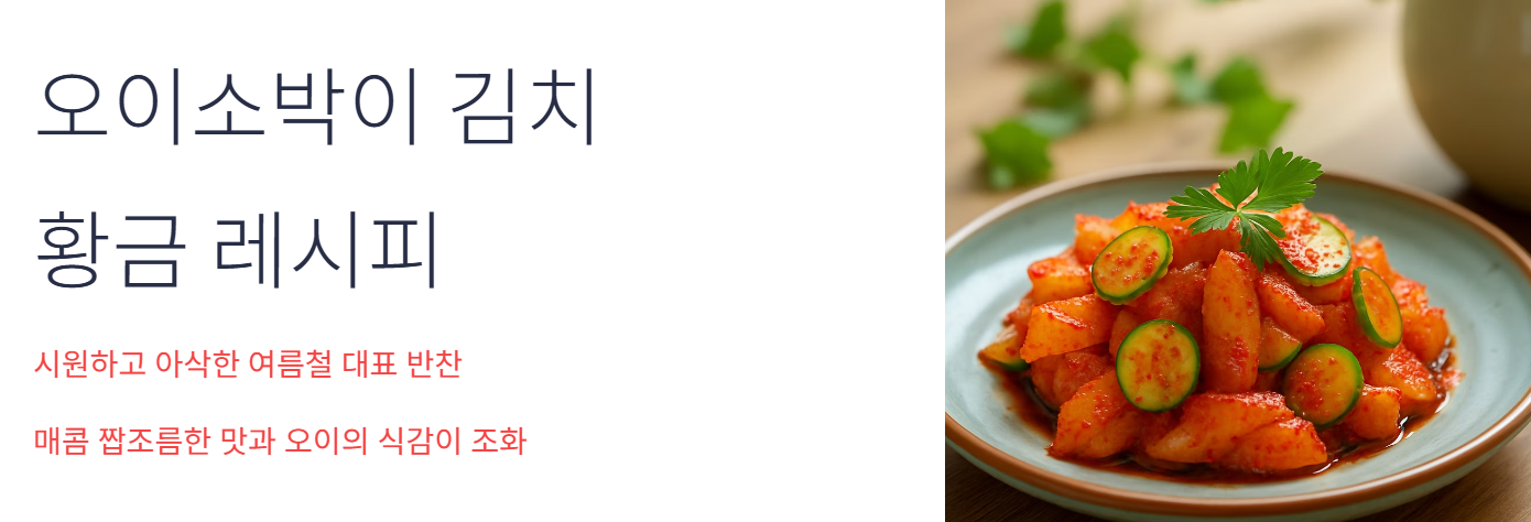 더운 여름철, 입맛 없을 때 아삭하고 시원한 김치가 생각나신다면? 바로 오이소박이 김치가 정답입니다. 짭조름하면서도 알싸한 양념 맛과 오이의 시원한 식감이 어우러진 오이소박이 황금레시피를 소개합니다. 초보자도 쉽게 따라할 수 있도록 양념 만들기부터 절이기, 보관 팁까지 꼼꼼히 정리해드릴게요.