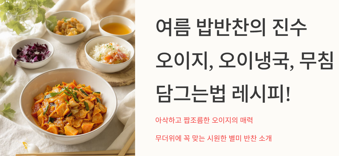 | 오이 양념무침 | 아삭하고 짭조름한 밥반찬 | 약 15분 | 높은 활용도 |
