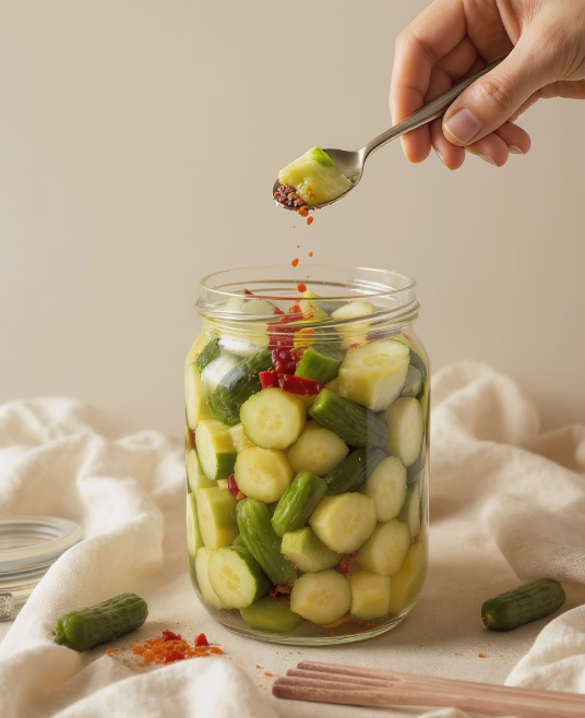 ✅ TIP: 식초, 소주, 설탕을 함께 넣으면 오이의 아삭함을 오래 유지할 수 있습니다.