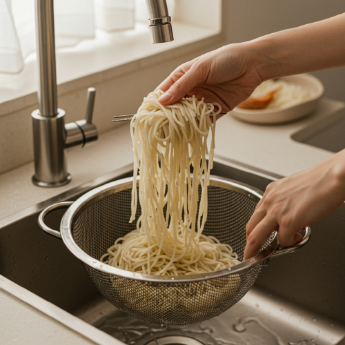 - 쫄깃한 식감을 위해 얼음물로 헹구는 과정은 필수입니다.