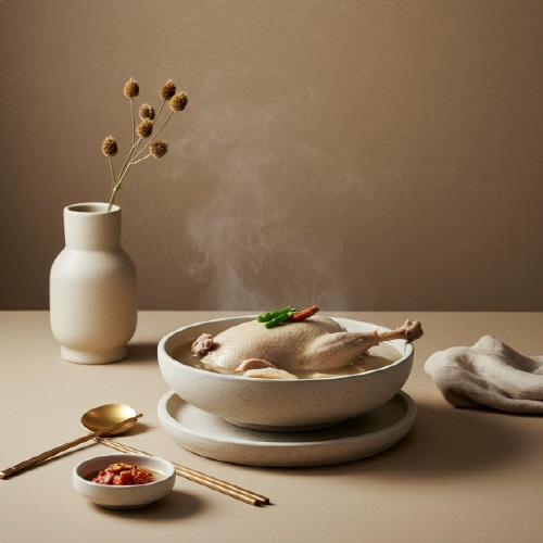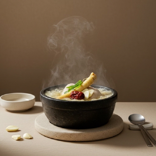 - 특징: 닭고기 + 인삼, 대추, 마늘 등 한방 재료