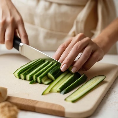 - 오이를 소금물(소금 1큰술 + 물 1리터)에 20~30분간 절이면 아삭한 식감이 더 살아나요.