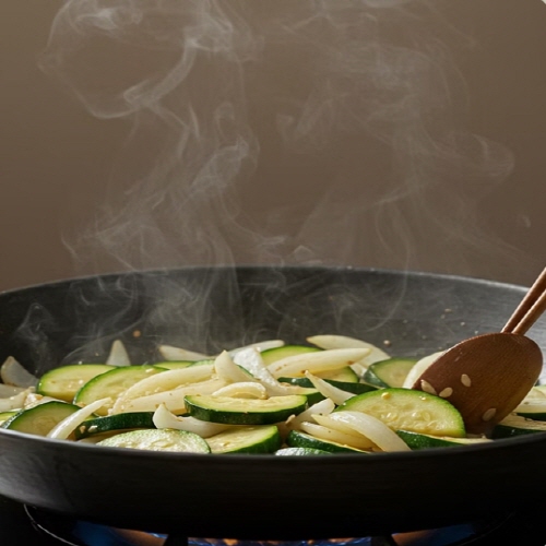 - 볶기: 팬에 들기름을 두르고 다진 마늘을 볶다가 호박과 양파를 넣고 볶습니다.