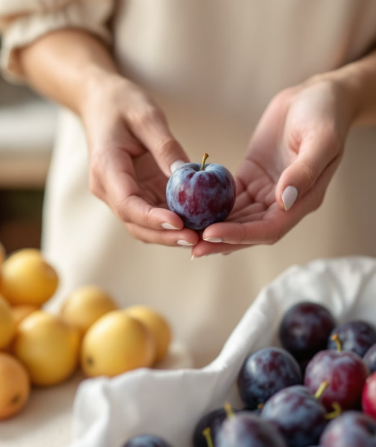 - 포인트: 자두는 수분이 많고 칼로리가 낮아 여름철 수분 보충과 다이어트 간식으로 제격입니다. 특히 식이섬유가 풍부하여 배변 활동을 도와줍니다.